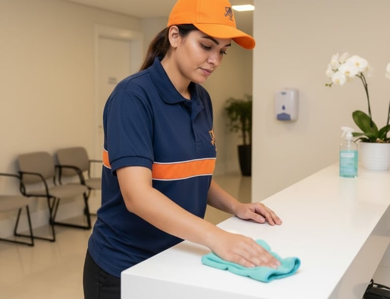 Limpeza e Higienização Profissional Mantenha seu ambiente de trabalho impecável. Utilizamos as melhores técnicas e produtos para garantir a limpeza e a saúde de escritórios, condomínios e áreas comerciais.